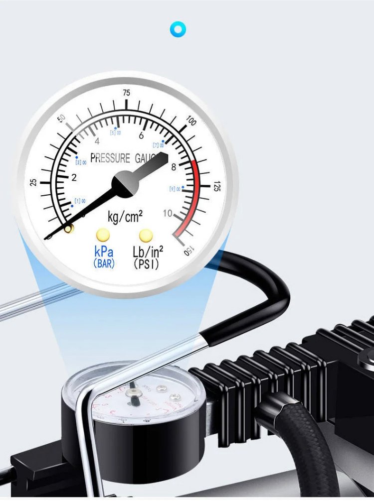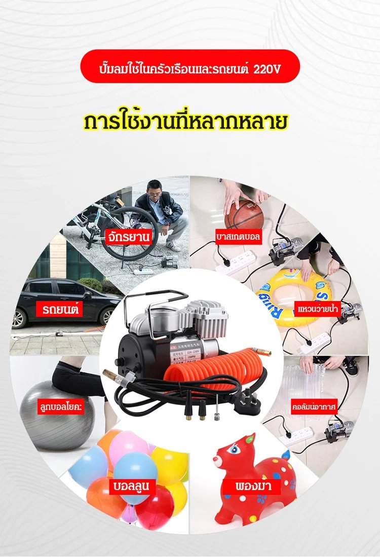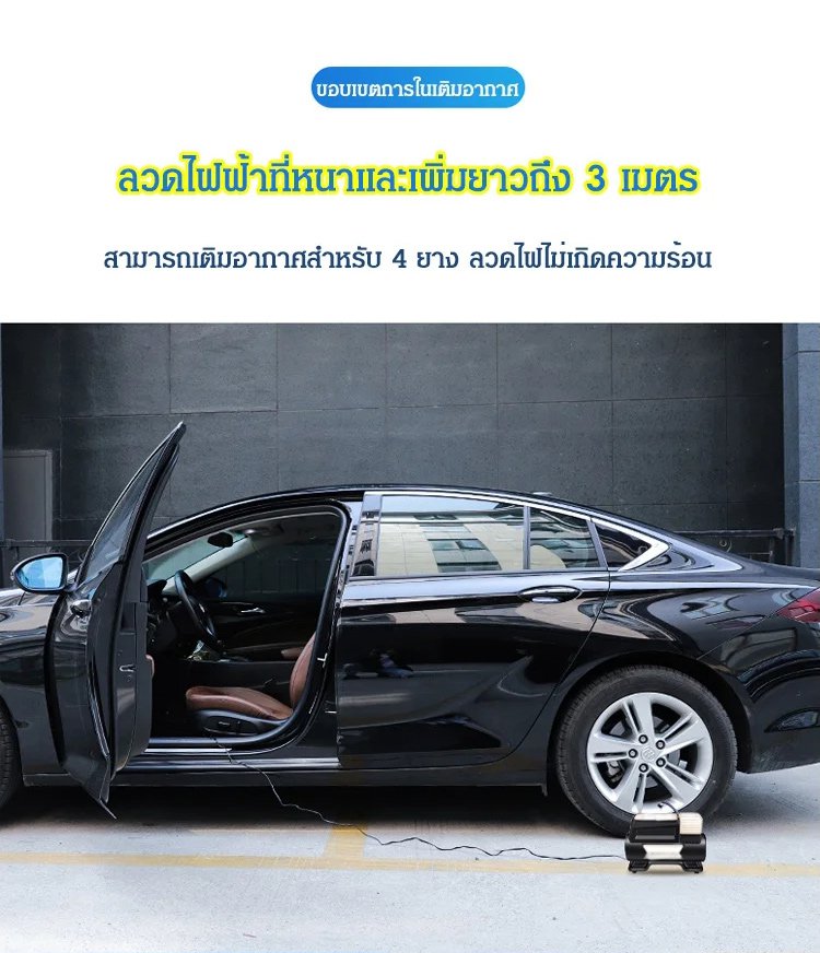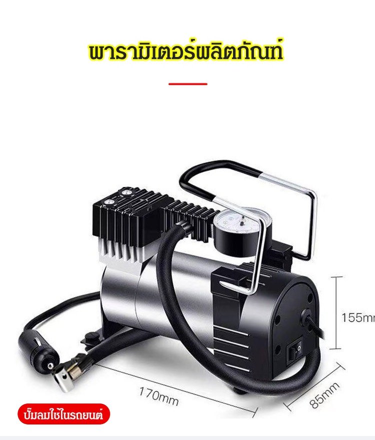 เติมลมรวดเร็วใน 30 วิ รองรับ 220V สำหรับปลั้กไฟ 12V ใช้ในรถ แกนทองแดงบริสุทธิ์ พลังงานสูง พกพาสะดวก ไม่กินพื้นที่ เกจวัดแรงดันลมยางแบบกลไกในตัว หยุดอัตโนมัติเมื่อเต็ม จำเป็นสำหรับการขับขี่